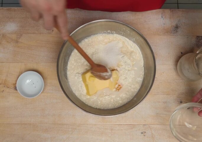 Put sugar and yeast in warm milk and let it work.