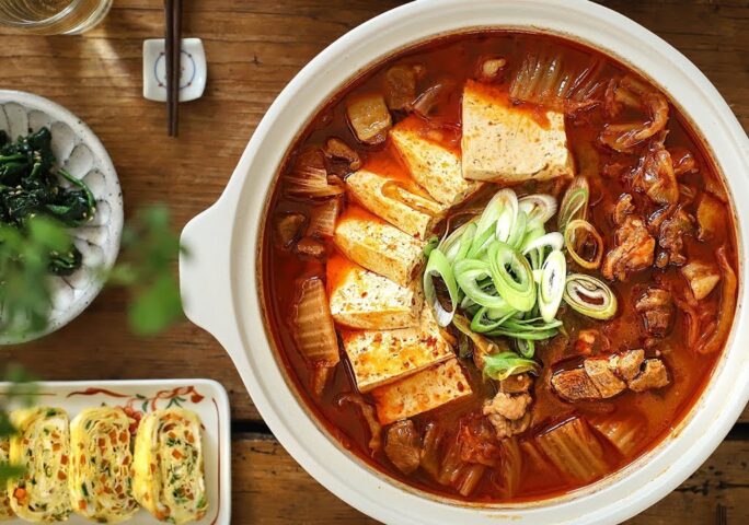 This Korean Pork and Kimchi Stew with Rolled Eggs is a spicy and tasty stew that is great for a family dinner. You won’t be able to put your utensil down, enjoying this generous amount of pork and kimchi. Make your dinner table delightful with this steady seller stew.