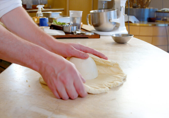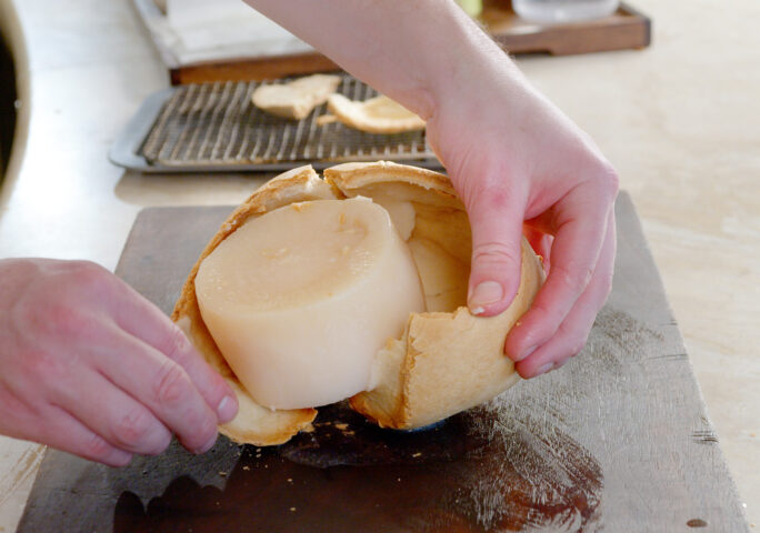 Place the radish into a dough mold made with salt and ash, wrap it, and cook over charcoal.