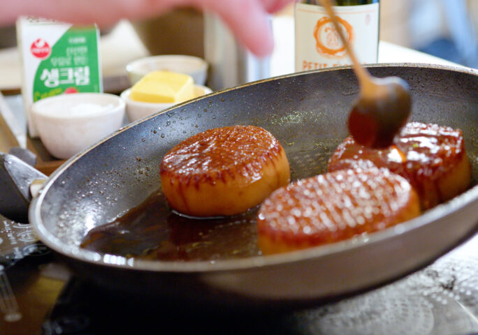 Add the sauce: In a small bowl, mix: 1 tbsp soy sauce 1 tbsp mirin 1 tbsp red wine 1 tsp brown sugar Pour the sauce into the pan and gently coat all pieces evenly.