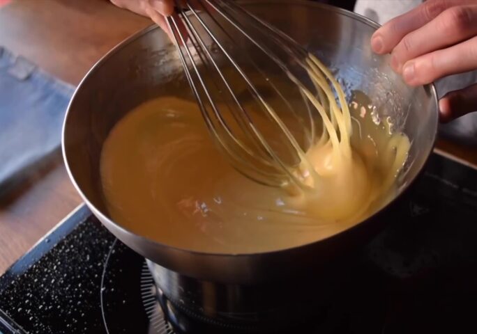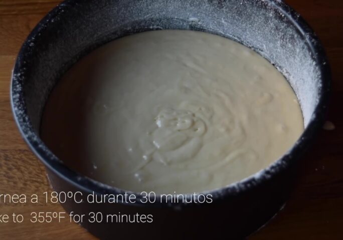 Make the sponge cake. Bake for 30 minutes at 355 ºF/180 ºC. Make the syrup.