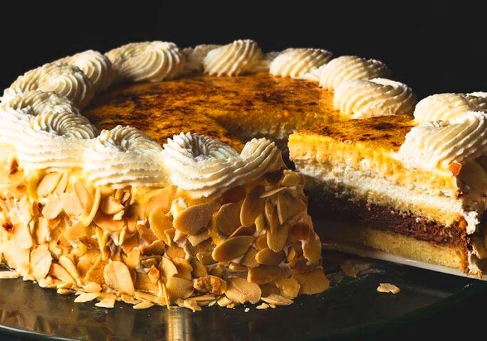 San Marcos Cake consists of a Génoise sponge cake, a syrup to moisten the sponge cake and give it that characteristic juicy touch, whipped cream, whipped cream with cocoa, and sweet egg yolk. This San Marcos Cake is perfect to enjoy during the weekend, to take it as a dessert to a friend’s or family’s house, or to surprise in a birthday. In spite of being a classic, it is one of those types of cakes that never fail.