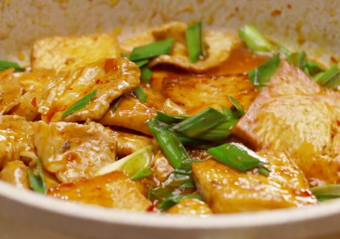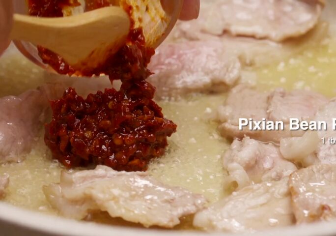 A fiery hot stir-fried tofu and pork seasoned with Pixian bean paste. The paste is often called the soul of Sichuan cuisine in China. It has a deeply flavorful base from fermented fava beans, chilies, and wheat flour. A dish perfect for those who are adventurous and love the fiery heat of Ma La.