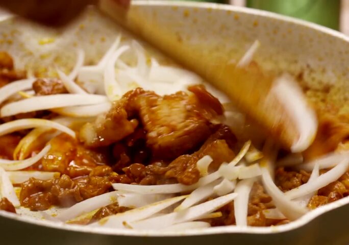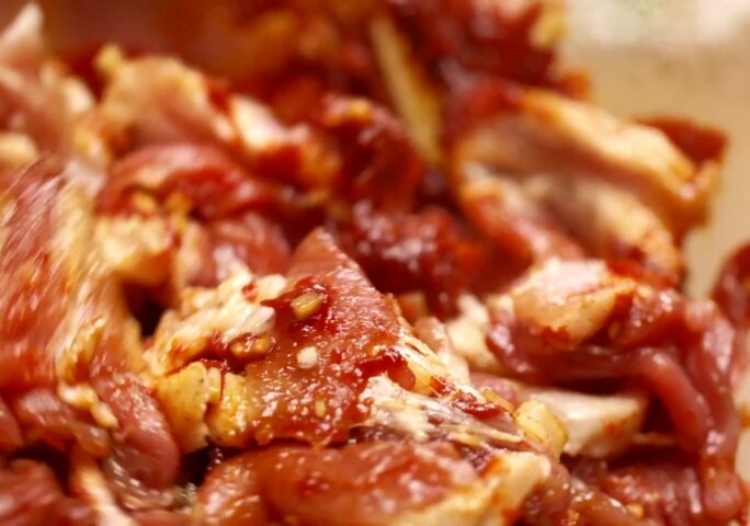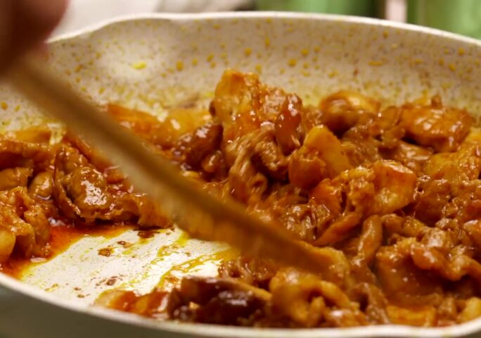 Place and cook the marinated pork for 8 minutes while stirring constantly.