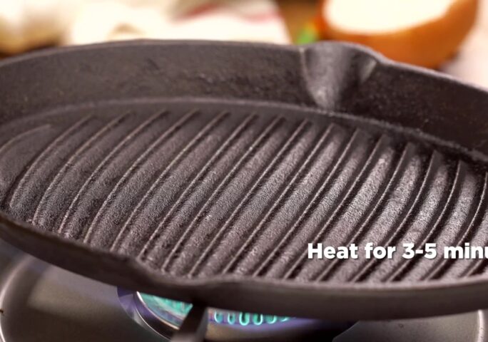 Meanwhile, heat a stovetop cast iron griller for 5 minutes on high heat.
