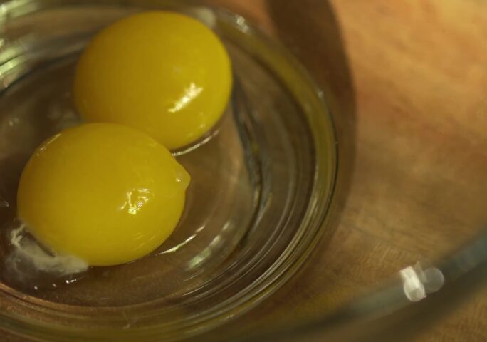 Separate eggs into the whites and yolks, make sure no egg yolk gets into the egg whites.
