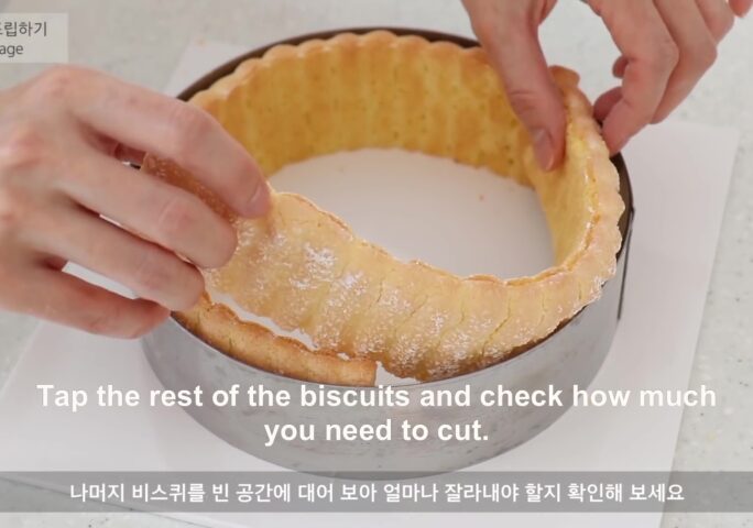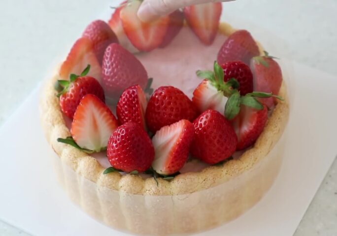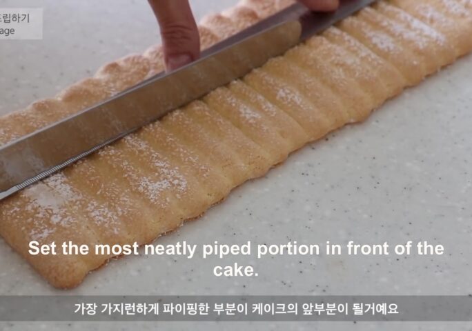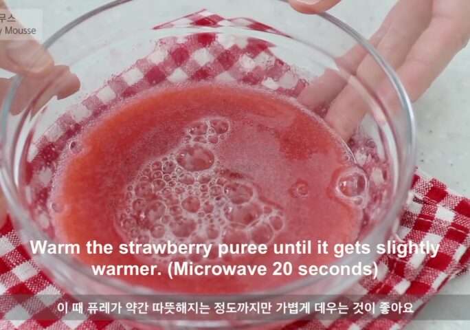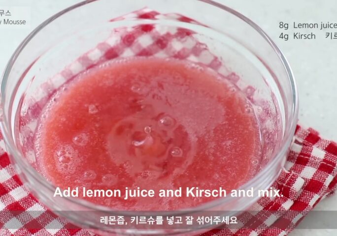 Today I made a strawberry charlotte cake. ‘Charlotte’ is a traditional French cake with biscuits on the bottom and sides and filled with cream. If it’s a cake with a biscuit-lined shape, whatever content is inside, all of them are called Charlotte. You can put bavarois in strawberry charlotte, or mix the strawberry puree and heavy cream to make a basic mousse. But this time I am going to make a light texture cake, so I put Italian meringue in the mousse. Maybe if you like light, fruity cakes. You will definitely like it.