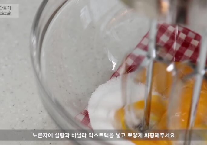 Biscuits à la cuillère: Add sugar A and vanilla extract to the yolk and whip.