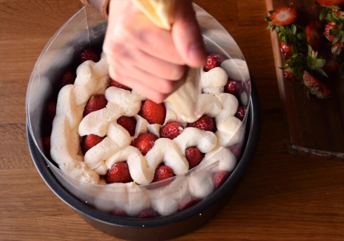 Sift the flour, set aside. In the bowl of the KitchenAid or a stand mixer, add the eggs along with the sugar and salt. Beat, increasing progressively the speed without reaching the maximum, until reaching the rippon stage* (see in NOTES).