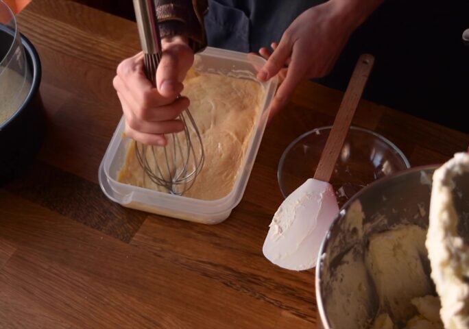 Add the flour little by little as we integrate with enveloping movements helping us with a spatula. Incorporate the butter and integrate again with enveloping and soft movements.